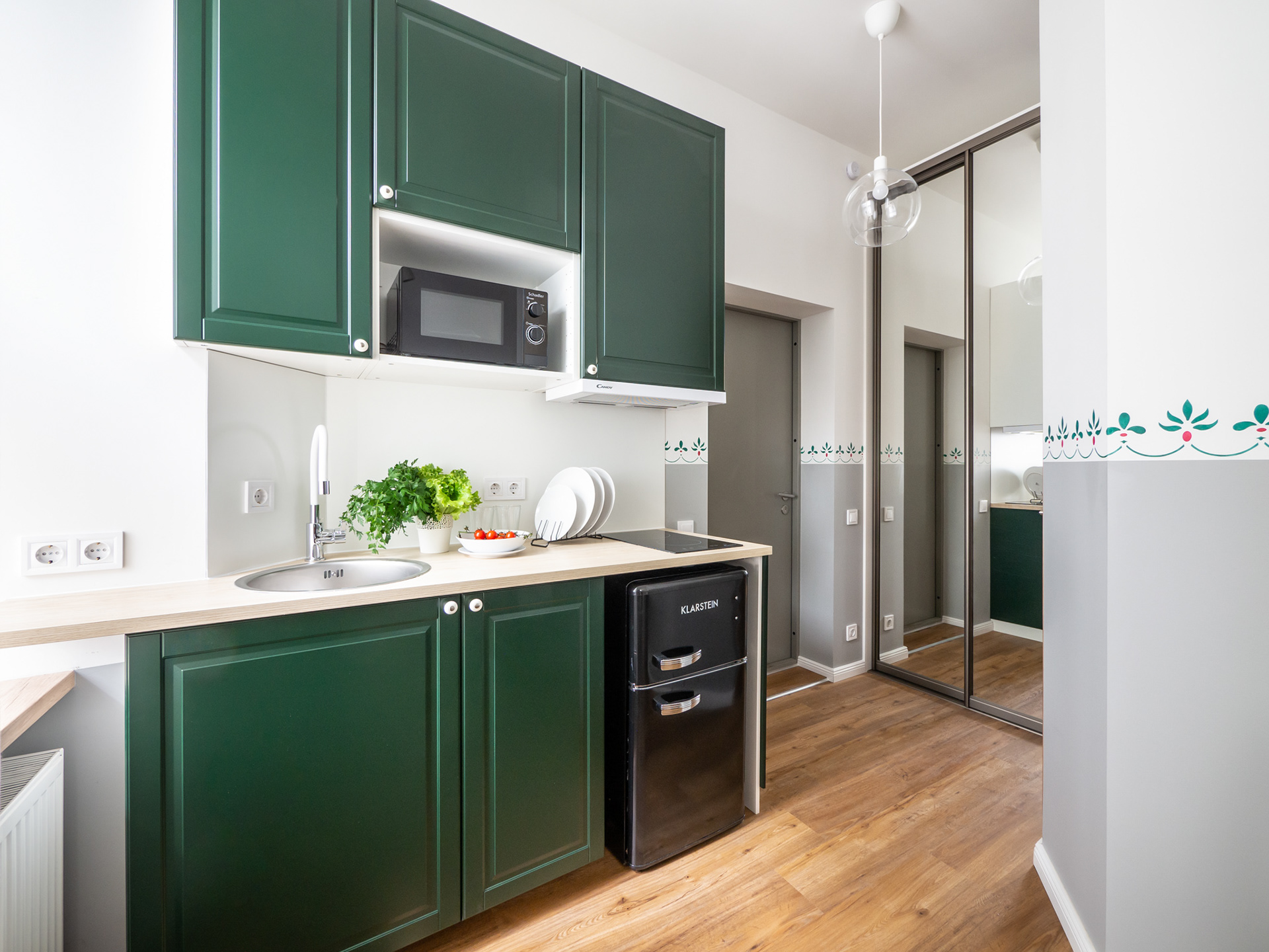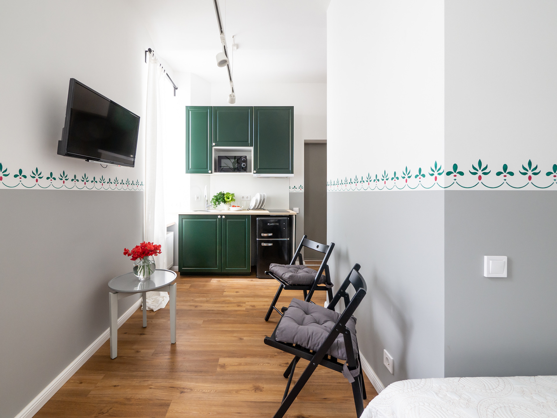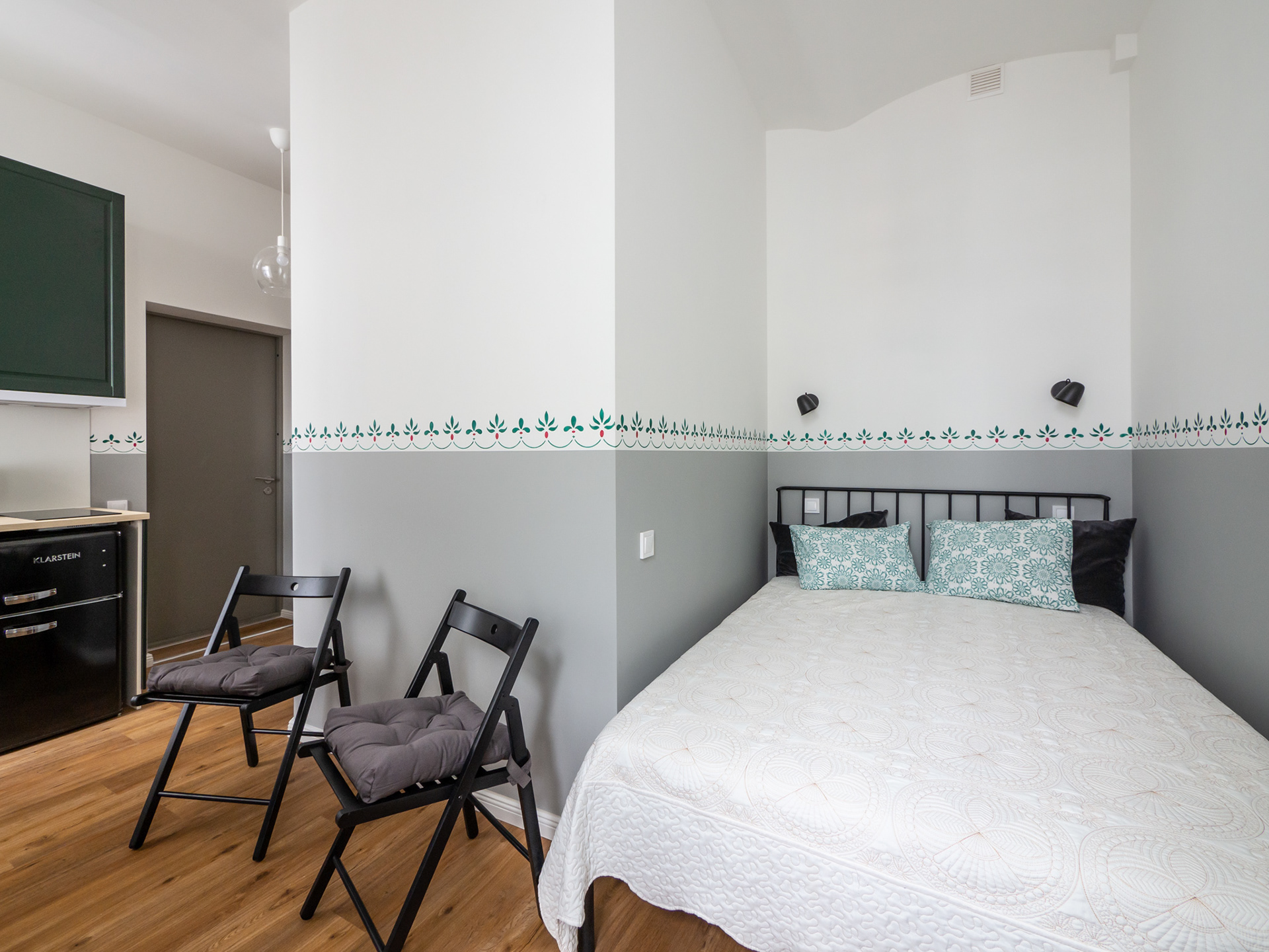 Mazs dzīvoklis ar zaļiem akcentiem
