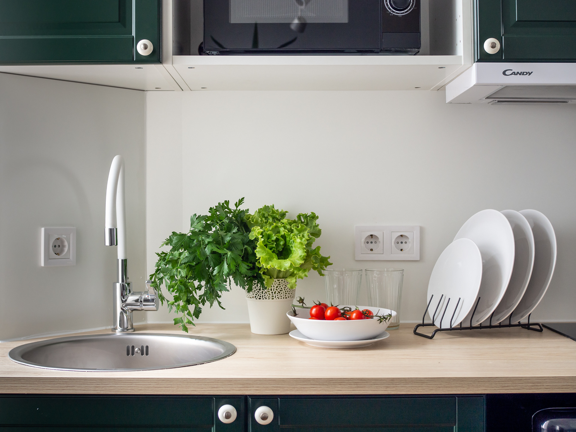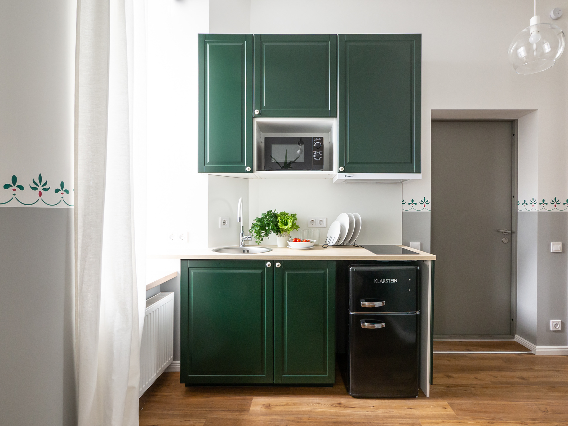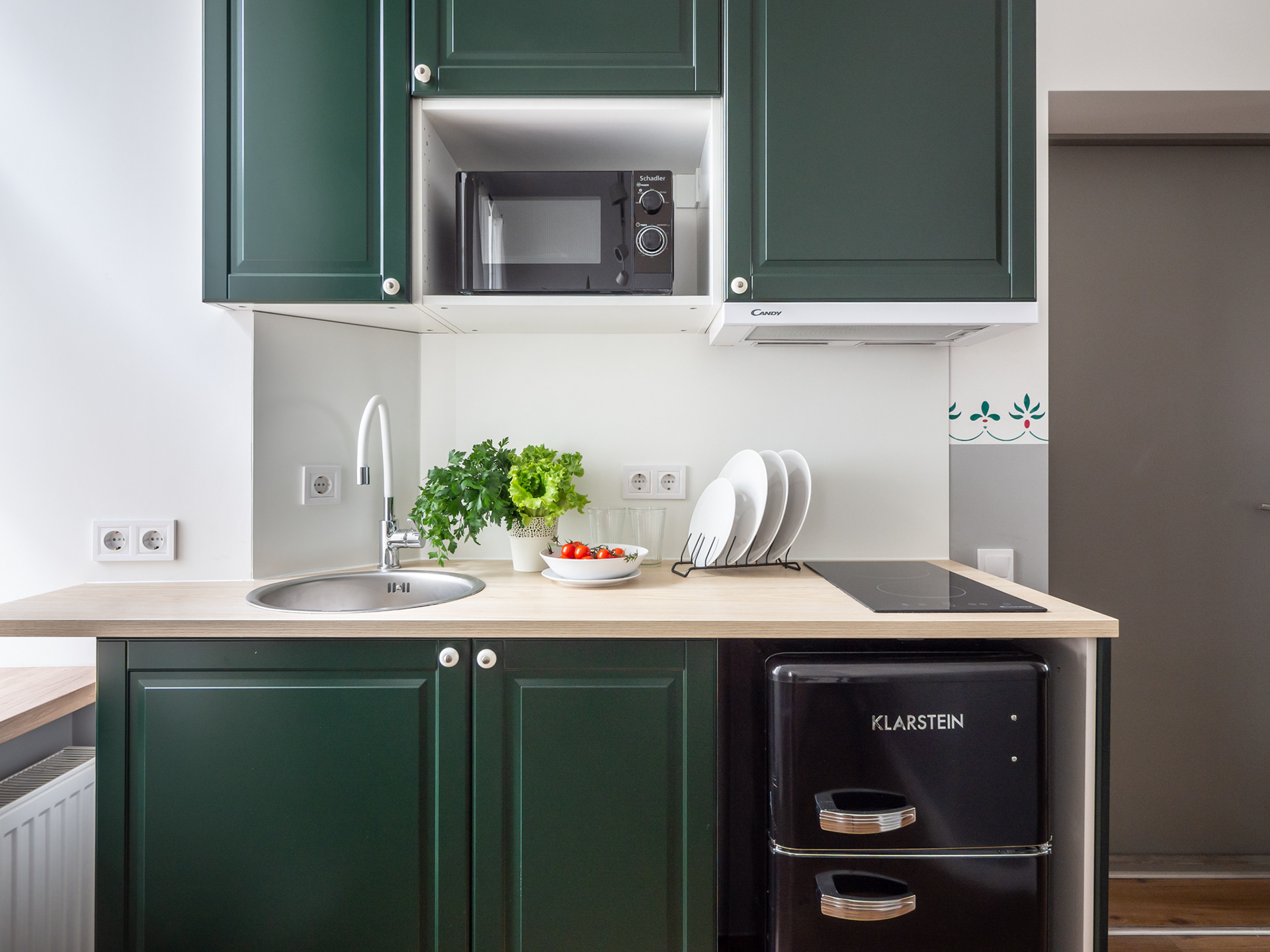 Mazs dzīvoklis ar zaļiem akcentiem